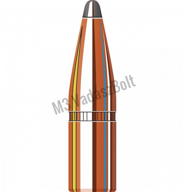 .30 (7,62) Hornady Lövedék SP 180gr - A gyártó tradicionális ólomhegyű lövedéke. Kialakítása és anyagminősége egyenletes gombásodást és erős becsapódási energiát tesz lehetővé. A Hornady InterLock technológiának köszönhetően a lövedék köpenye és magja tökéletesen egymáshoz záródnak egymáshoz, így közvetítve tökéletesen minden energiát a becsapódás és a gombásodás során.
