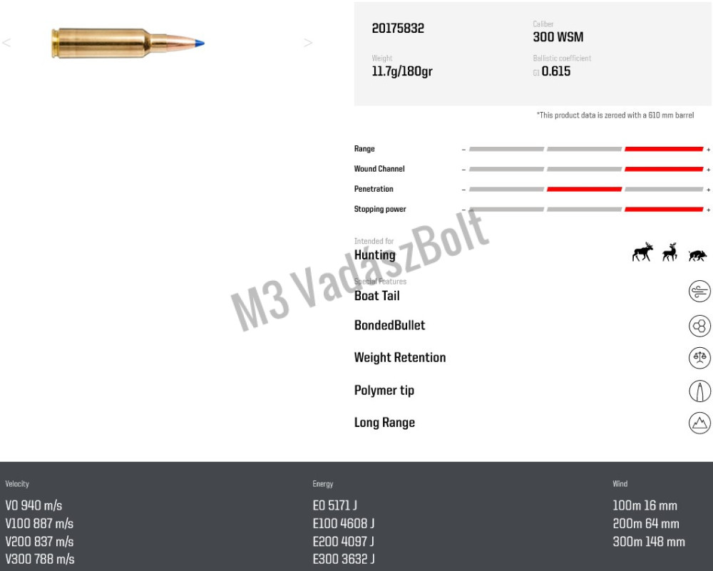 300 WSM Norma Bondstrike 11,7g/180gr (új)