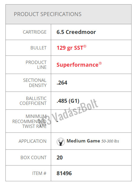 Hornady Superformance 6,5 Creedmoor SST 129gr