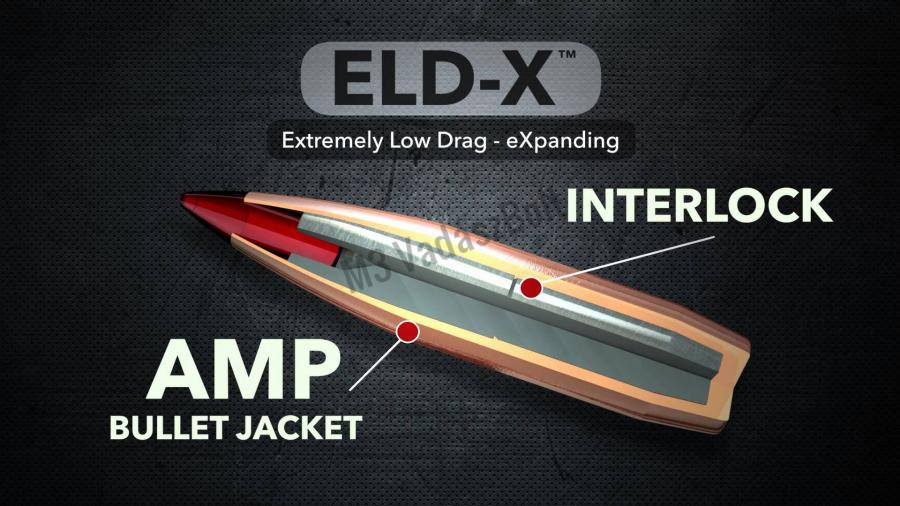 7mm (.284) Hornady Lövedék ELD-X 175gr - Technológiai szempontból a gyártó egyik legjobban fejlesztett lövedéke. Pontlövésre ideális, minden távolságon jól szuperál, kiemelkedően magas ballisztikai együtthatóval, megbízható, egyenletes gombásodással.