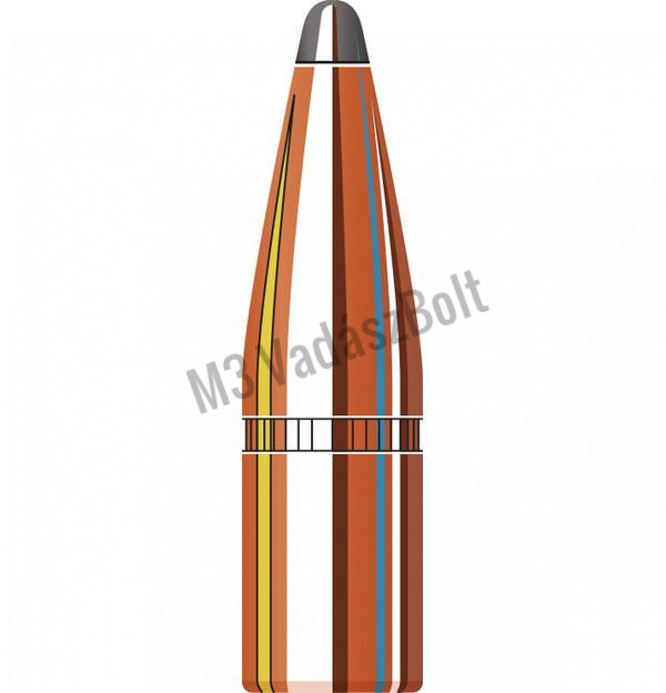 8mm (.323) Hornady Lövedék Interlock SP 195gr - A gyártó tradicionális ólomhegyű lövedéke. Kialakítása és anyagminősége egyenletes gombásodást és erős becsapódási energiát tesz lehetővé. A Hornady InterLock technológiának köszönhetően a lövedék köpenye és magja tökéletesen egymáshoz záródnak egymáshoz, így közvetítve tökéletesen minden energiát a becsapódás és a gombásodás során.