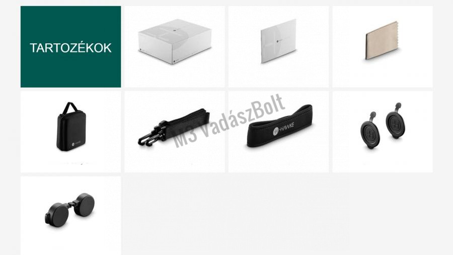 Tartozékok: kemény hordtáska, hordszíj, nyakpánt, objektív törlőkendő, objektív és okulár védő kupakok