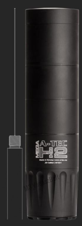 Az A-Tec Mega H2 hangtompító egy moduláris szerkezettel kialakított eszköz, amely a felhasználás igényei szerint alakítható. Fejlesztett, erősebb szerkezet és még inkább effektív az első, hideg csőből kilőtt lövésnél. A moduláris kialakításnak köszönhetően egy vagy két modult is le lehet szerelni a hangtompítóról, ezzel igaz teljesítménycsökkenés mellett, de mégis egy kompaktabb eszközt kapunk. A Mega H2 a sima H2 csőhöz hozzáadott hosszával megegyezik, de a cső 20 mm-rel mélyebben fekszik benne.