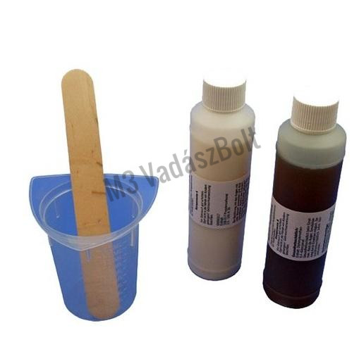 Egyszerűen és biztonságosan használható agyar kitöltő szett, melynek használata megakadályozza az elejtett vadkan agyarának károsodását, elszíneződését.
