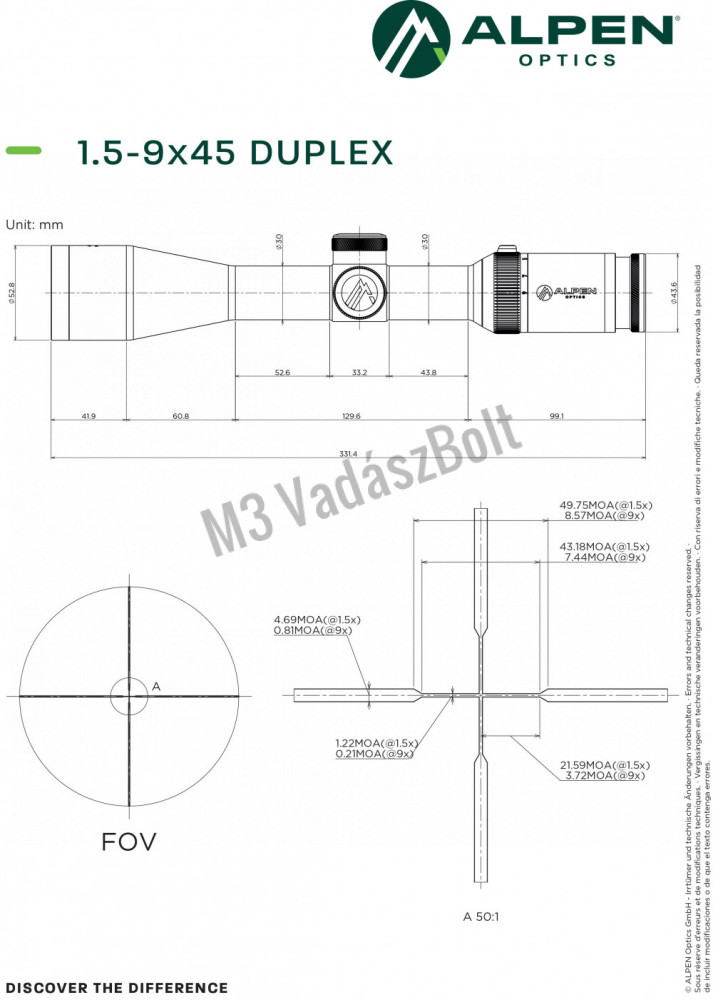 Alpen Optics Apex XP 1,5-9x45 Duplex világítópontos céltávcső