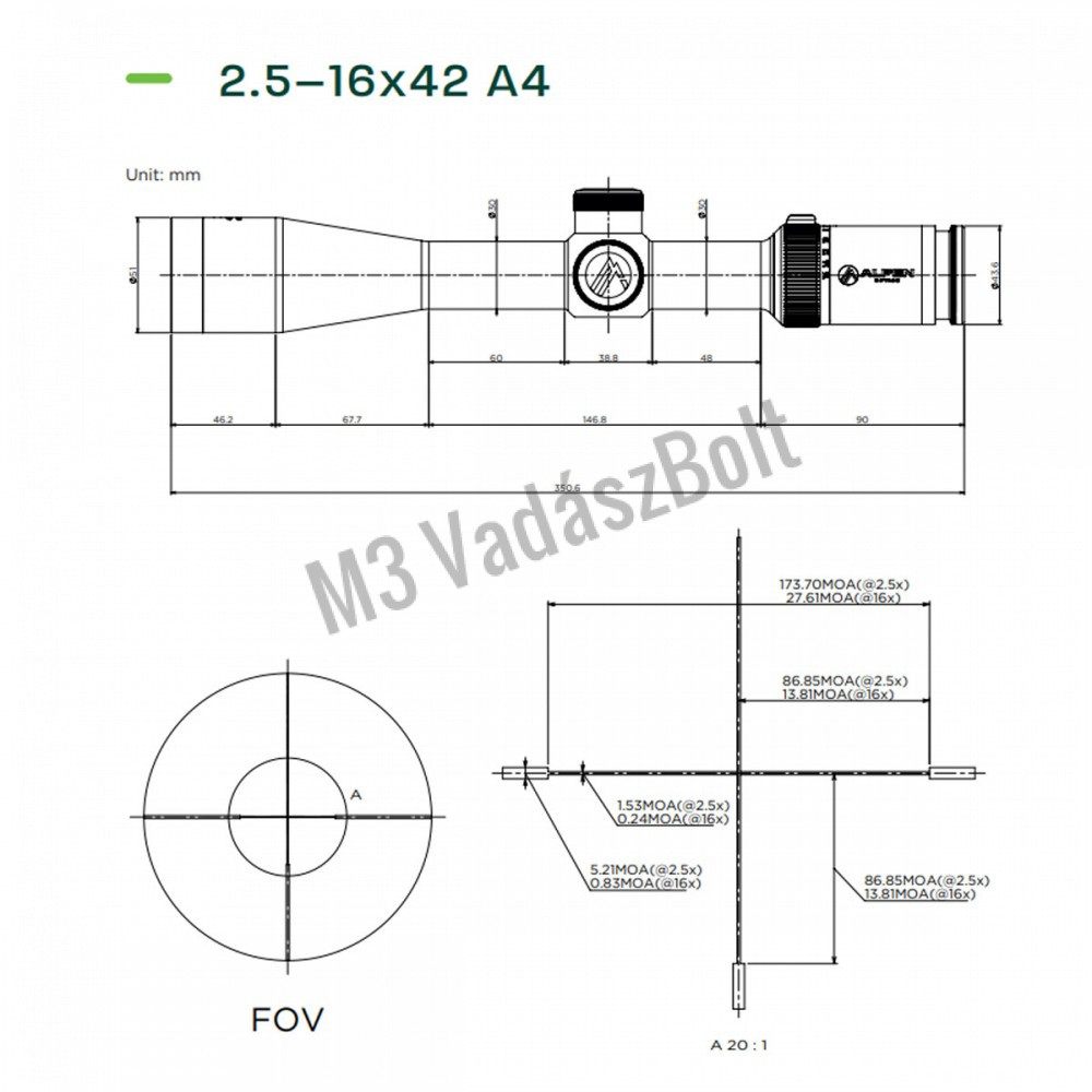 Alpen Optics Apex XP 2,5-16x42 A4 világítópontos céltávcső