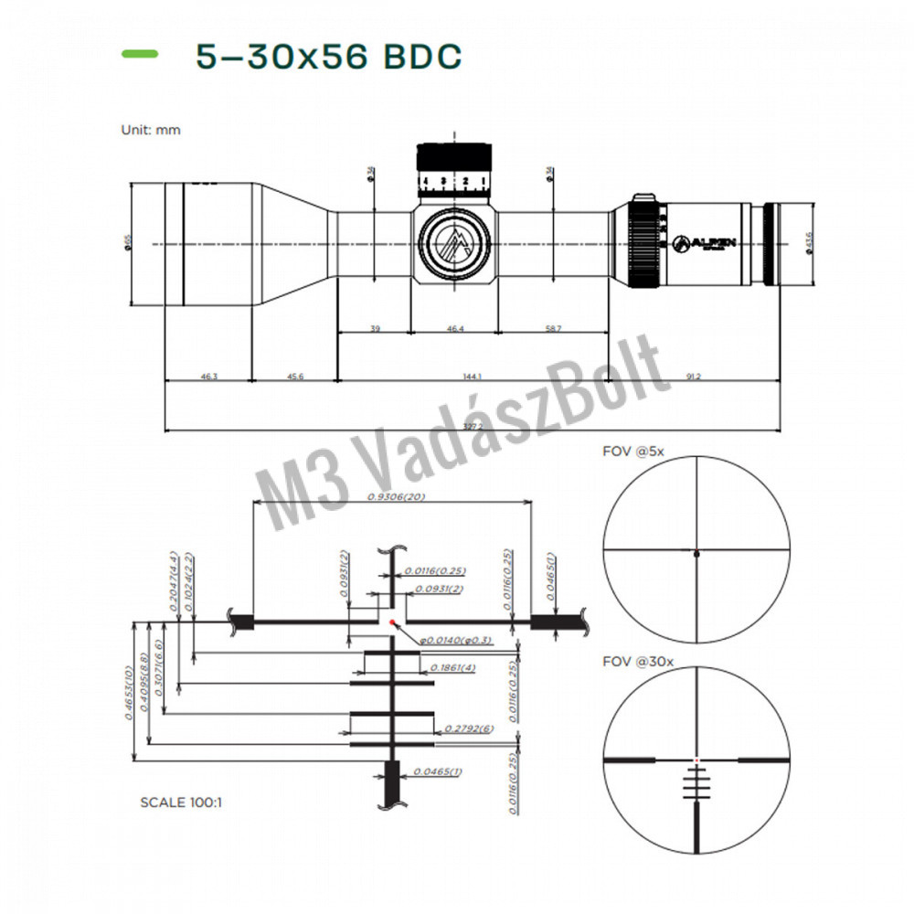 Céltávcső nagyítás tartomány:5x - 30x