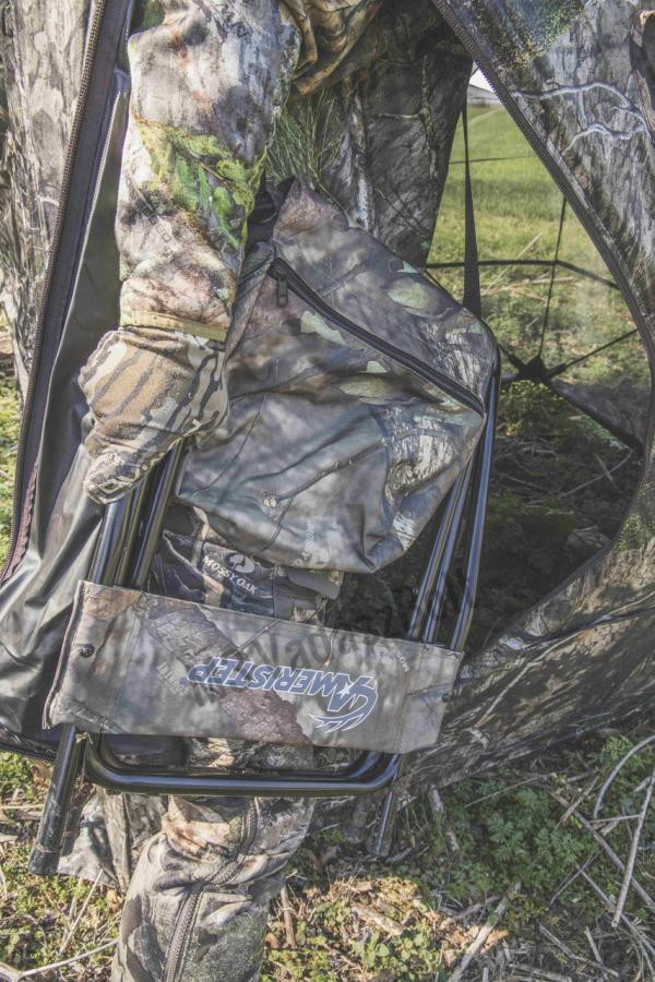 Az Ameristep Blind Chair Mobuc vadászszék ideális választás minden vadász számára, aki hosszabb ideig szeretne kényelmesen és stabilan várakozni leshelyen vagy lesen belül. Masszív, fekete porfestett acélváza rendkívül strapabíró, miközben könnyű kialakításának köszönhetően egyszerűen szállítható. A párnázott ülőfelület és háttámla vízálló bevonattal rendelkezik, így nedves környezetben is kényelmes és száraz marad. Az oldalsó felszerelés-tároló zseb praktikus megoldást kínál kisebb kiegészítők, például hívók, kesztyű vagy egyéb eszközök elhelyezésére. A Mossy Oak Break-Up Country mintázat kiváló álcázást biztosít természetes környezetben, így segít észrevétlen maradni a vad számára.