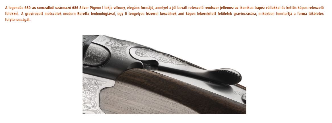 A 686-os Ezüstgalamb a világ egyik  legelegánsabb sorozatpuskája,melynek  kiegyensúlyozottsága és agilitása  világszerte elismert.