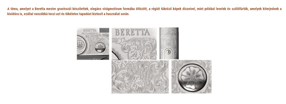 A baszkül díszítése szintén új:  bevésett virágminták,  szőlőfürtők és a Beretta logo.
