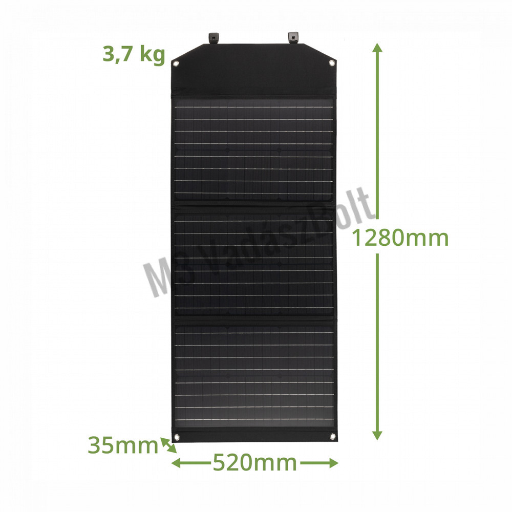 A modern és lapos kialakításnak köszönhetően a napelem egyes szegmensei könnyedén összehajthatóak egy kis táskaként, és a poggyászban tárolhatóak, ami helyet takarít meg. Az eszköz mindig készen áll a következő spontán használatra.