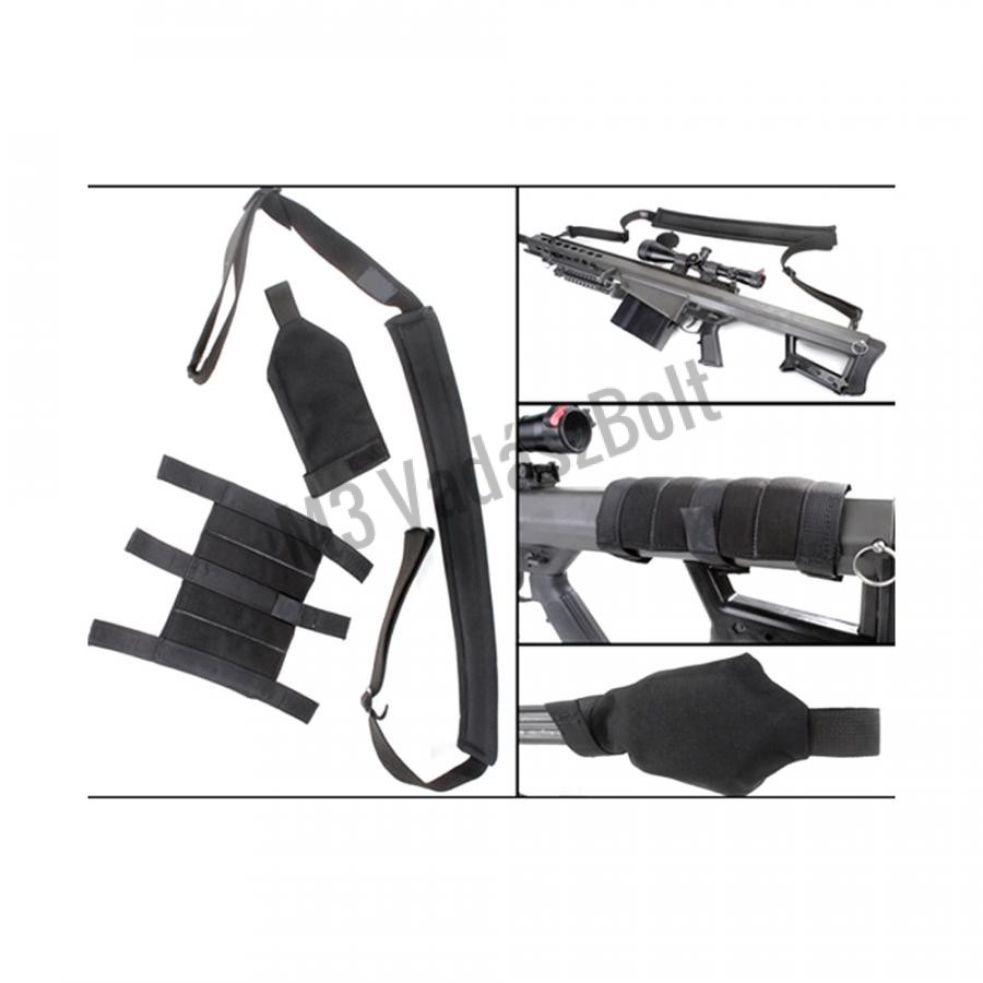 A Barrett Kit Webbing Accessory Black egy praktikus és sokoldalú kiegészítőszett, amelyet kifejezetten Barrett fegyverekhez és más hosszúcsövű fegyverekhez terveztek, a kényelmes hordozhatóság és a fokozott védelem érdekében. A készlet tartalmaz egy állítható fegyverszíjat, egy csővédőt, valamint egy pofadék huzatot, így egyszerre növeli a használati komfortot és óvja a fegyver érzékeny részeit a szennyeződésektől és a sérülésektől. A heveder segítségével a fegyver hosszabb távon is kényelmesen hordozható, legyen szó vadászatról, sportlövészetről vagy taktikai alkalmazásról, míg a csővédő megakadályozza, hogy por, nedvesség vagy idegen anyag kerüljön a csőbe. A pofadék huzat kényelmesebb támaszt biztosít lövés közben, csökkenti a hideg felület érzetét, és javítja a fegyver kezelhetőségét. A szett tartós, strapabíró anyagból készült, klasszikus fekete színben, amely diszkrét megjelenést és univerzális kompatibilitást biztosít a legtöbb fegyverhez.