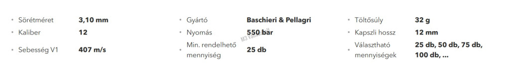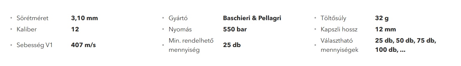 Baschieri & Pellagri 12/70 MB Classic 32g 3,50 mm sörétes, nyúl és fácán lőszer