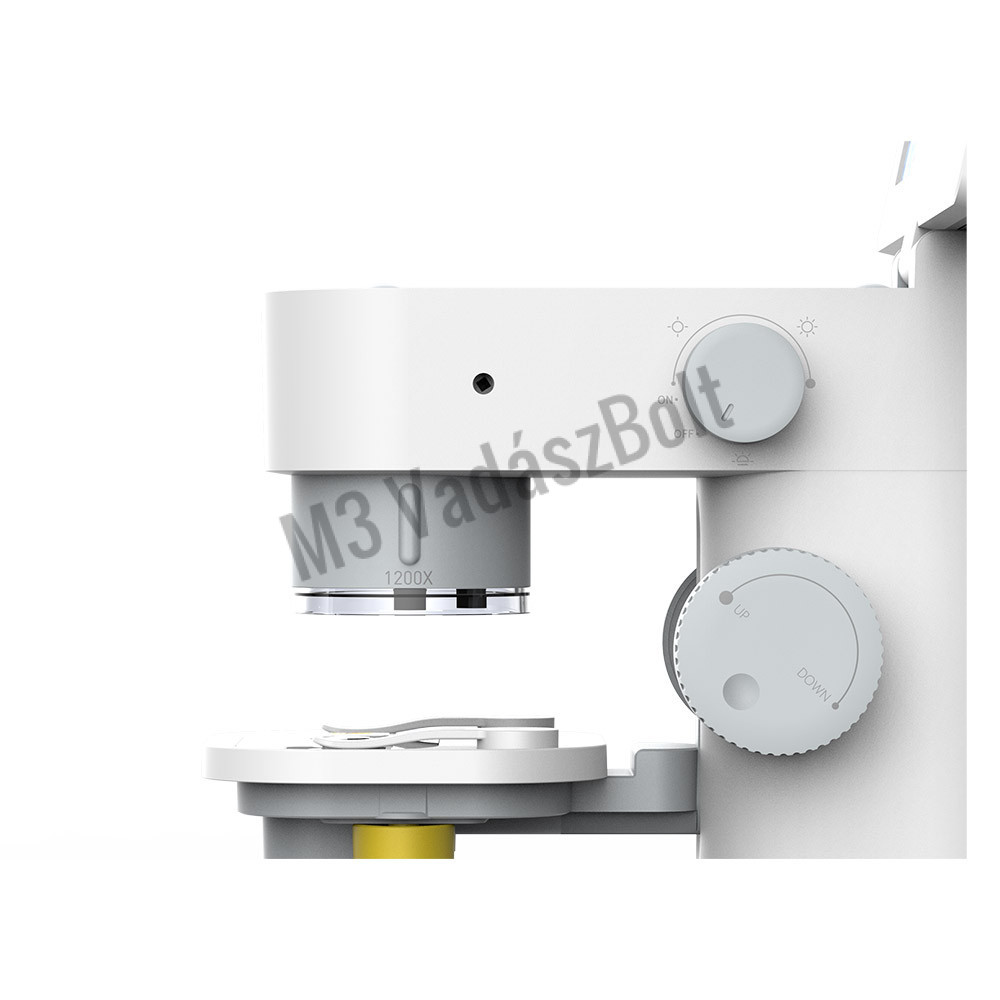 • Három optikai objektívlencse – 100X, 800X és 2200X nagyítás, könnyedén váltható forgó mechanizmussal.