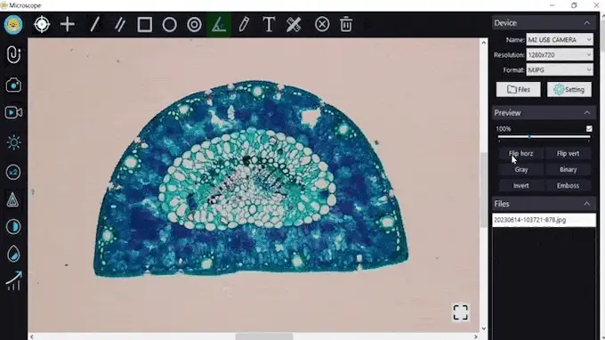 A Darwin M2 mikroszkóp 2,0 megapixeles CMOS-érzékelőjével 1280x720 pixel felbontású HD videók és 1600x1200 pixel felbontású fényképek rögzítését teszi lehetővé. Ezek a képek nagy felbontásban és nagyobb méretben is megtekinthetők számítógépen vagy laptopon a képminőség romlása nélkül, lehetővé téve a minták részletesebb vizsgálatát és elemzését.