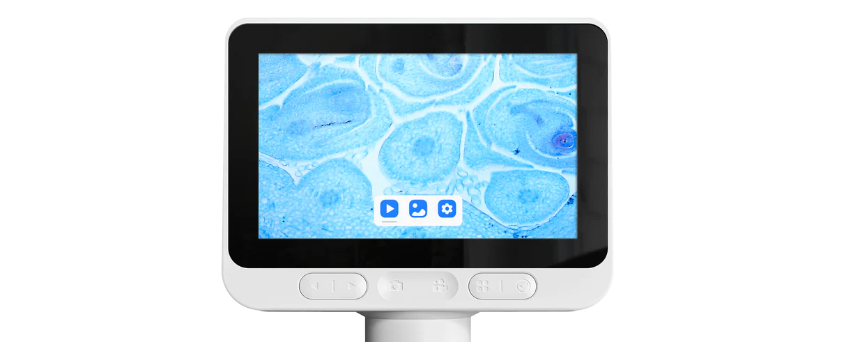 A Darwin M2 digitális mini mikroszkópja 4,3"-os IPS képernyővel kerül forgalomba. Az IPS kijelzőpanel a TN és VA panelekhez képest lényegesen élénkebb és élethűbb színeket biztosít. A 24 bites RGB színmélységgel 16,7 millió lehetséges szín megjelenítésére képes, ami jobb színvisszaadást és szélesebb betekintési szögeket eredményez. Eközben az IPS panelek minimális színeltolódást mutatnak még különböző szögekből történő megfigyelés esetén is, így a látvány önmagáért beszél.