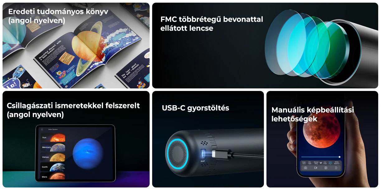 Az okostelefon megjelent az optikai megfigyelésben is, mint digitális megjelenítő, hogy könnyedén felfedezhesd és innovatívan megörökíthesd az égi csodákat, még akkor is, ha eddig nem mélyültél el a asztronómia területén és nincs gyakorlatod benne. Valós idejű megfigyelések nagyképernyőn - egy picit izgalmasabban.
