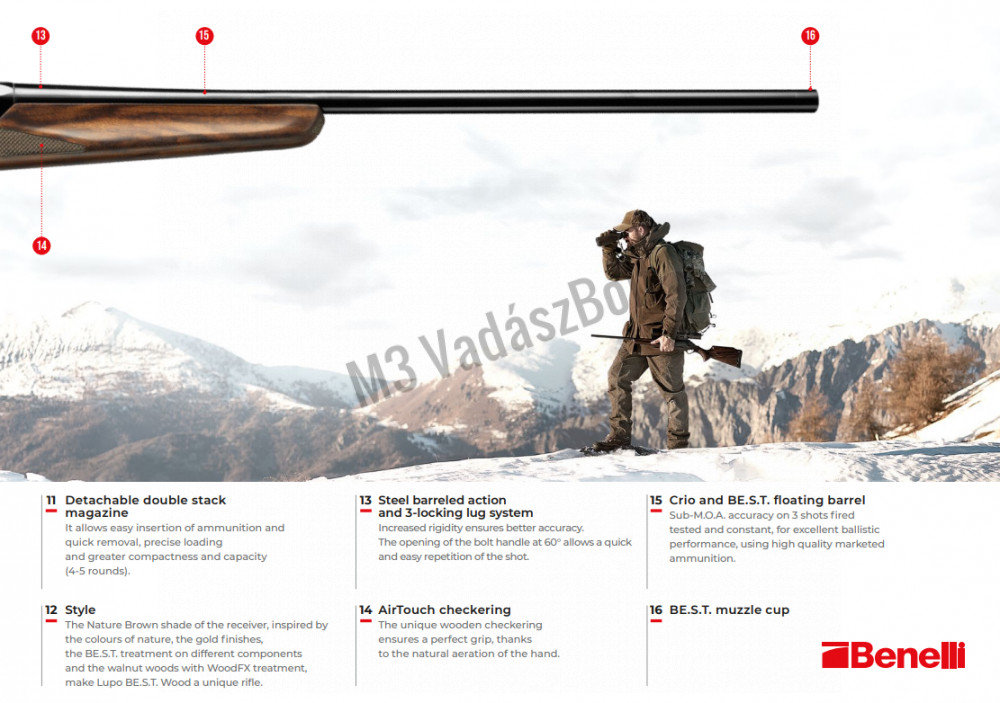 Benelli Lupo BE.S.T Wood golyós vadászfegyver, 308Win kaliberben, fa tussal, raktáron, AR030340S