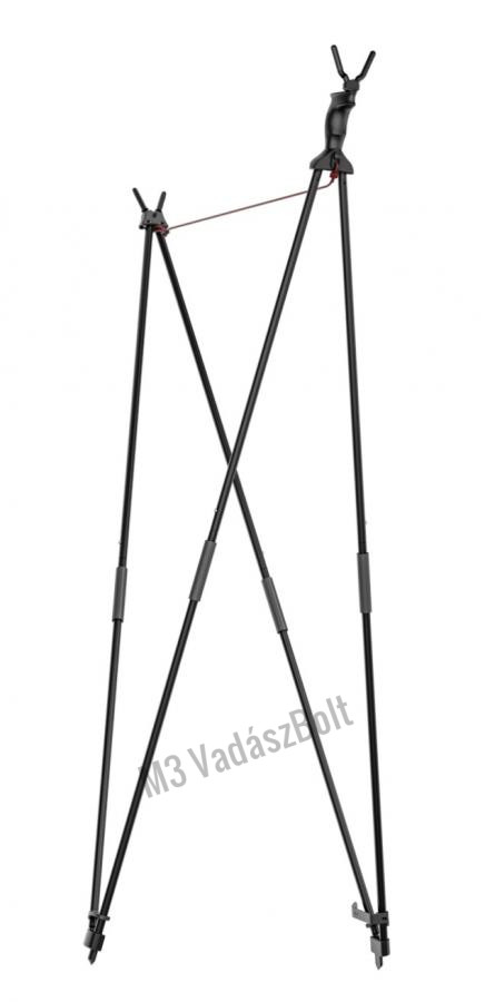 Egy könnyű, mégis rendkívül stabil alumínium lőbot, amely minden vadászati helyzetben biztos támaszt nyújt. Ergonomikus, forgatható markolata (±11°) megkönnyíti a mozgó célok követését, a levehető gumiburkolatú villa pedig különböző puskákhoz illeszthető. Hátulsó támasza növeli a pontosságot, az állítható zsinór pedig megakadályozza a lábak túlzott széttartását és gyors felállítást tesz lehetővé. A habfogantyúk kényelmes fogást biztosítanak hideg időben is. Mindössze 1,2 kg-os súlyával könnyen hordozható, ideális választás precíz, terepi vadászathoz.