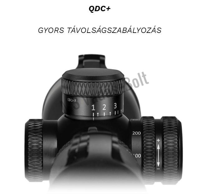 A Blaser QDC+ segítségével a lőtávolságot 500 m távolságig közvetlenül a Blaser B2 retikula beállításán állíthatja be. A saját puskájához való optimális alkalmazkodás érdekében a készlet tíz cserélhető gravírozott gyűrűt tartalmaz, amelyek a vadászlövedékek széles skáláját lefedik. Egy további üres gyűrű egyedi jelölésekkel is ellátható. Mint minden Blaser céltávcsőnél, a 100 m-es célpontlövés mellett a GEE beállítás (4 kattintással felfelé) is rögzíthető. Az akaratlan beállítás így nem lehetséges, és a reteszelt pozíció biztosítja a pontlövés biztonságát normál vadászati távolságokon. A Blaser QDC+ opcionálisan elérhető a B2 2-12×50 iC, B2 3-18x50 iC és B2 2,5-15×56 iC modellekhez, és a felhasználó által könnyen utólagosan felszerelhető.