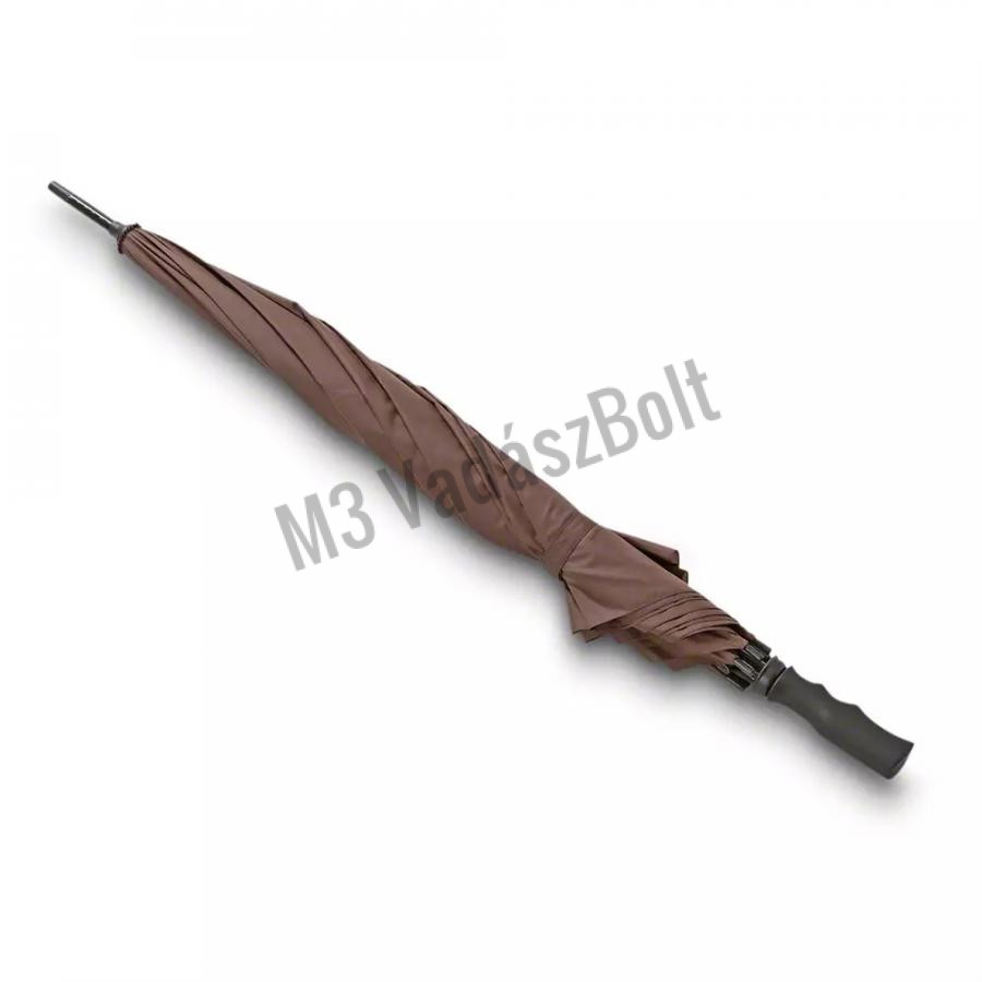 A Blaser nagyméretű esernyő stílusos és praktikus kiegészítő, amely megóv az esőtől anélkül, hogy kompromisszumot kellene kötnöd a megjelenésben. A barna színű, golfméretű esernyő középen nyomtatott Blaser Argali logóval díszített, és elegáns, sportos megjelenést kölcsönöz. Tágas kialakításának köszönhetően két személy számára is elegendő védelmet nyújt, a szél- és vízálló poliészter pongee anyag pedig biztosítja, hogy a legzordabb időjárás se legyen akadály. A fekete, üvegszálas bordázatú váz könnyű, mégis rendkívül stabil, és egy gombnyomásra automatikusan nyílik. A puhatámaszos, hengeres markolat kellemes fogást és kényelmes használatot biztosít, a markolat színe pedig harmonizál az esernyő elegáns barna árnyalatával.