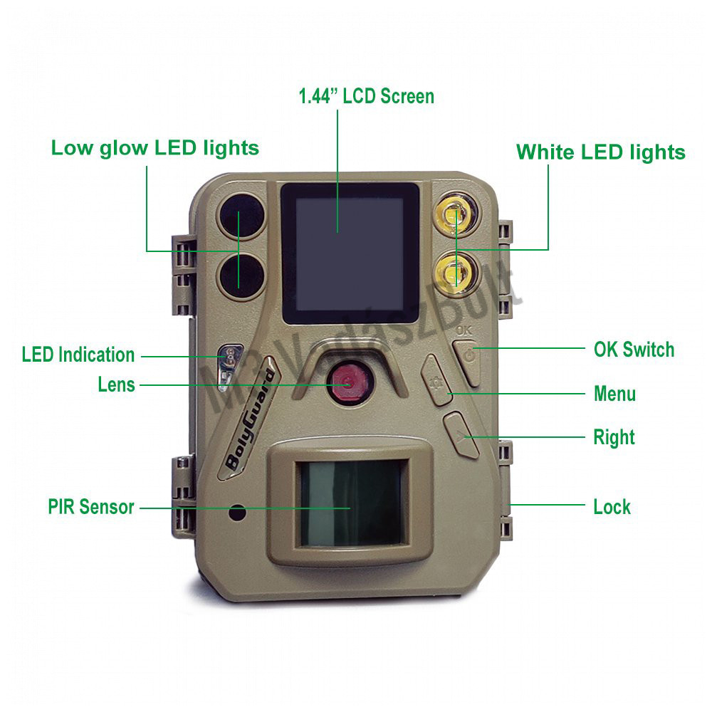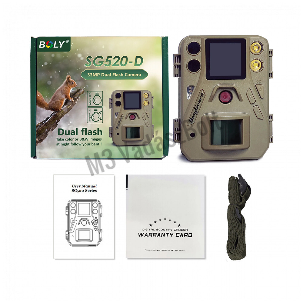 A Boly Guard Wolf SG520-DB az egyik legkisebb vadkamera a piacon. A kamera kettős vakurendszerrel rendelkezik, alacsony csillanású LED és fehér LED gondoskodik a megfelelő fényről. Nagyérzékenységű passzív infravörös mozgás érzékelő (PIR) élesíti a kamerát, bármilyen emberi, vagy állat általi mozgásra, majd nagyfelbontású képeket és videót készít a területről.