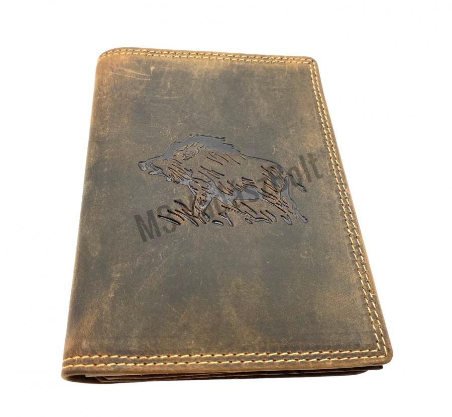 Bőr vadászigazolvány tartó vaddisznó motívummal