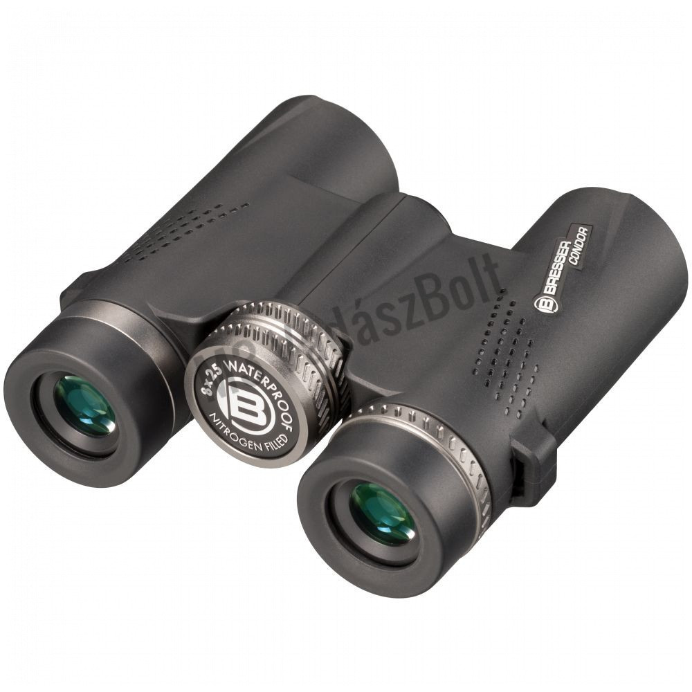 A BRESSER Condor 8x25 egy rendkívül könnyű távcső, tökéletesek túrázáshoz vagy természetmegfigyeléshez. Vízálló, a nitrogén töltésnek köszönhetően pedig páramentes. A forgatható és zárható szemkagylókkal a megfigyeléshez szükséges szemtávolság fokozatosan állítható, ezáltal szemüveggel is kényelmesen használható. A Condor modellek BaK-4 prizmával és többrétegű bevonattal rendelkezik a jobb fényáteresztés érdekében. Az okulárok és a fókuszgyűrű erős fémből készült.