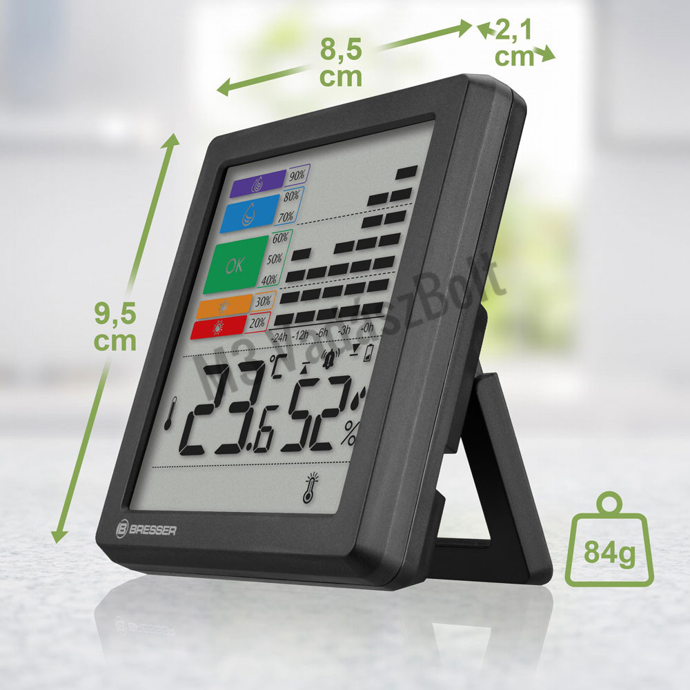 Mi az, ami a régi épületekben vagy a hideg hónapokban olykor megjelenik a pincében vagy lakótérben? Ez a penészgomba. A Bresser hőmérséklet- és páratartalom mérő készülék figyelmeztet, ha a penészesedés feltételei különösen kedvezővé válnak, így gyorsan és hatékonyan megteheted a szükséges intézkedéseket a környezetedben megjelenő penész eltüntetésére, sőt hatékonyan megelőzheted azt.