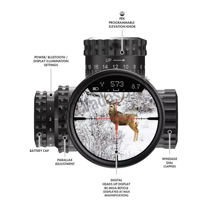 A PEK rendszer maximális tárcsázási pontosságot biztosít. Miután megadta az adatokat az alkalmazásban, könnyedén tudja használni a PEK rendszert a magassági állításhoz. Ez a rendszer egy digitális érzékelőt és egy kattintásmentes mechanikus emelőtornyot kombinál az 1/10 MOA-ig terjedő maximális pontosság érdekében. A digitális magassági tornyokkal rendelkező alkalmazás ballisztikai kalkulátorának használatával a Veracity PH PEK rendszere minden eddiginél egyszerűbbé teszi a távolság állítását csúcssebességgel, pontossággal és teljesítménnyel.