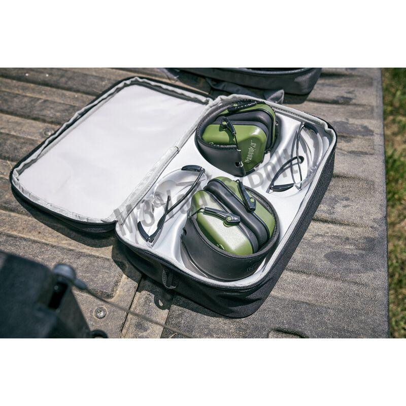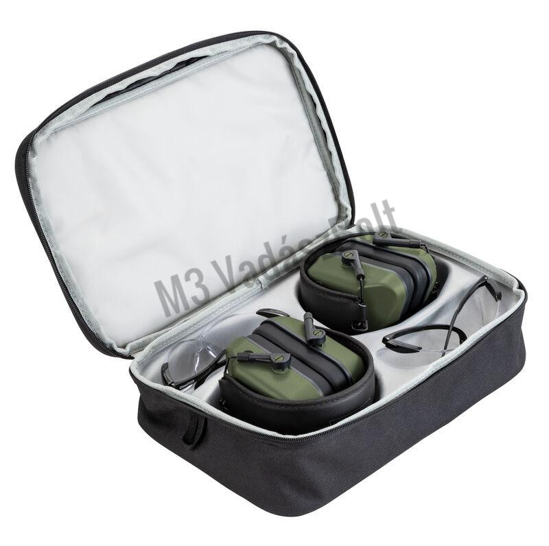 Kényelmes, stílusos fülvédő kiváló hallásvédelmet biztosít, miközben könnyű és kényelmes marad a lövész számára. Nyitott keretű ballisztikus szemüveg, amelyet kifejezetten sportlövők számára terveztek, a lencsék csökkentik a tükröződést és javítják a célkép élességét. A szettben mind a fülvédőből, mind a védőszemüvegből két darab található, valamint egy cipzáras tok, amely védi a felszerelést a ütésektől, szennyeződéstől.