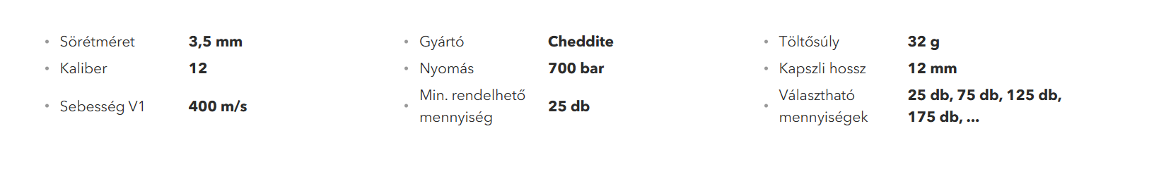 Cheddite 12/70 Tordo 32g, 3.5mm, sörétes, nyúl és fácán lőszer