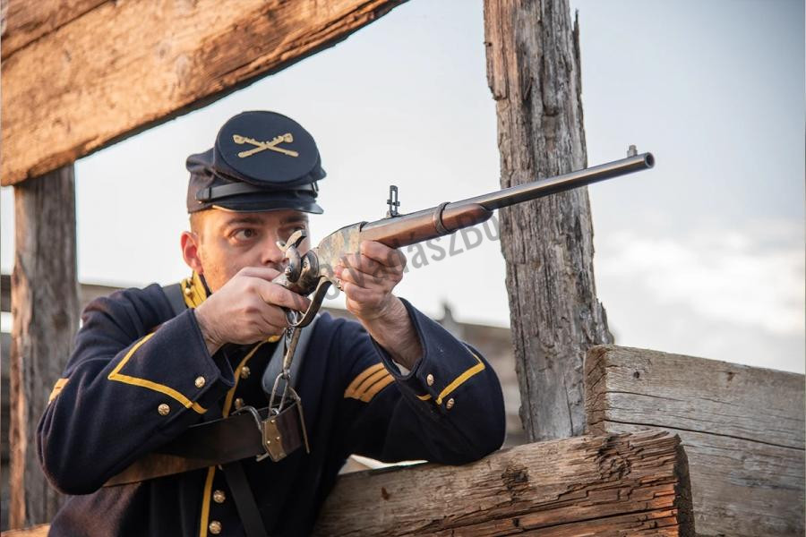 A Chiappa Firearms 1860 Spencer karabélya egy ikonikus, történelmi fegyver modern másolata, amely a klasszikus megjelenést és a mai gyártási minőséget ötvözi. Az eredeti Spencer karabély az amerikai polgárháború egyik legjelentősebb hátultöltő, ismétlő fegyvere volt – a Chiappa replikája ennek a korszaknak a hiteles és megbízható újraértelmezése. A fegyver 45 Colt kaliberű, 20 hüvelykes (508 mm) huzagolt acélcsővel rendelkezik, ami kékített felületkezelést kapott a klasszikus megjelenésért. Az antikolt acél zárszerkezet autentikus stílust kölcsönöz, míg a kézzel olajozott diófa tus és előagy időtálló eleganciát biztosít. Az alsókaros (lever-action) mechanizmus gyors és megbízható működést tesz lehetővé, a 7-lövetű csőtár pedig praktikus kapacitást nyújt. A hátsó létra típusú irányzék vízszintesen és függőlegesen állítható, így a pontos célzás minden helyzetben elérhető. A fegyver single lane extractor kihúzóval szerelt, amely biztosítja az üres hüvelyek gyors és hatékony eltávolítását. A Chiappa 1860 Spencer karabély ideális választás történelmi bemutatókhoz, céllövészethez, vagy a klasszikus fegyverek gyűjteményének különleges darabjaként.