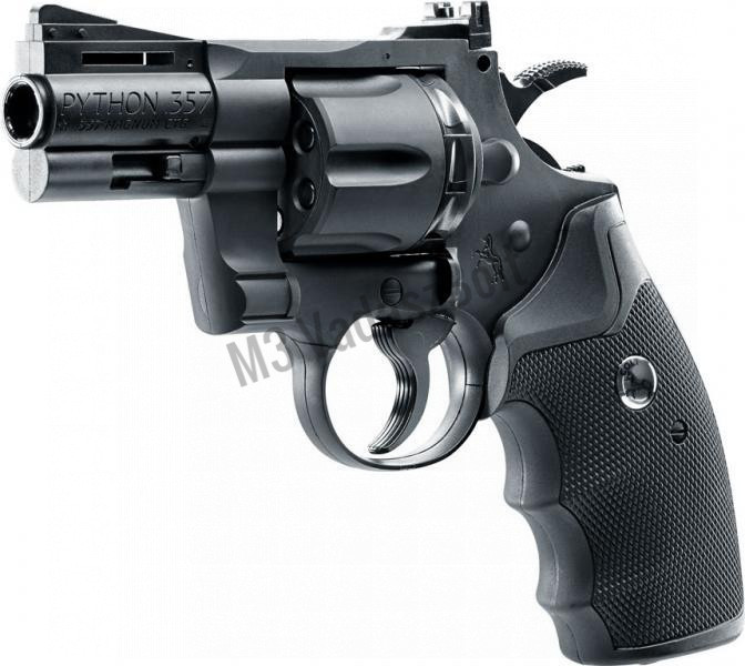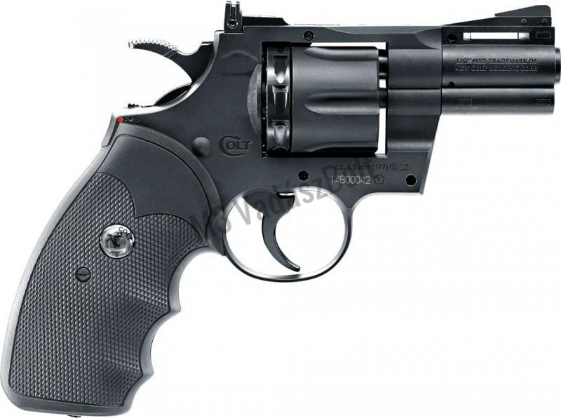 A Colt gyártót méltán nem kell bemutatnunk senkinek, hiszen az első igazán sikeres öntöltő pisztoly is a gyártó és John M. Browning nevéhez fűződik. A Colt Python egy igazi zászlóshajója a gyártónak. Kalibere és elképesztő ereje miatt rendkívül népszerű hazánkban is. A legkisebb típusból készített az Umarex egy hasonlóan megbízható és masszív légpisztolyt, melynek alapjait egy másik gyártó, a Crosman szolgáltatta. Az Umarex Colt Pythonja 2,5"-es csővel rendelkezik, működése acél BB-s, vagy diabolo lövedékekkel történik. Forgótárjába 10 db. lövedék tölthető, melyet a pisztoly elsütőszerkezete forgat. Single és Double-action sütése van, tehát revolverezni is tudunk, de előfeszíthetjük a kakast az elsütőbillentyű könnyebb működéséért. Anyaga túlnyomórészt polimer, 12 grammos szabvány CO2 patronokkal működik, melyek a markolatpanel alatt kaptak helyet. Egy patronnal nagyjából 120 jó lövést lehet leadni. Csőhossza miatt ez a darab sokkal inkább élménypisztoly, mint komoly sportlövő eszköz!