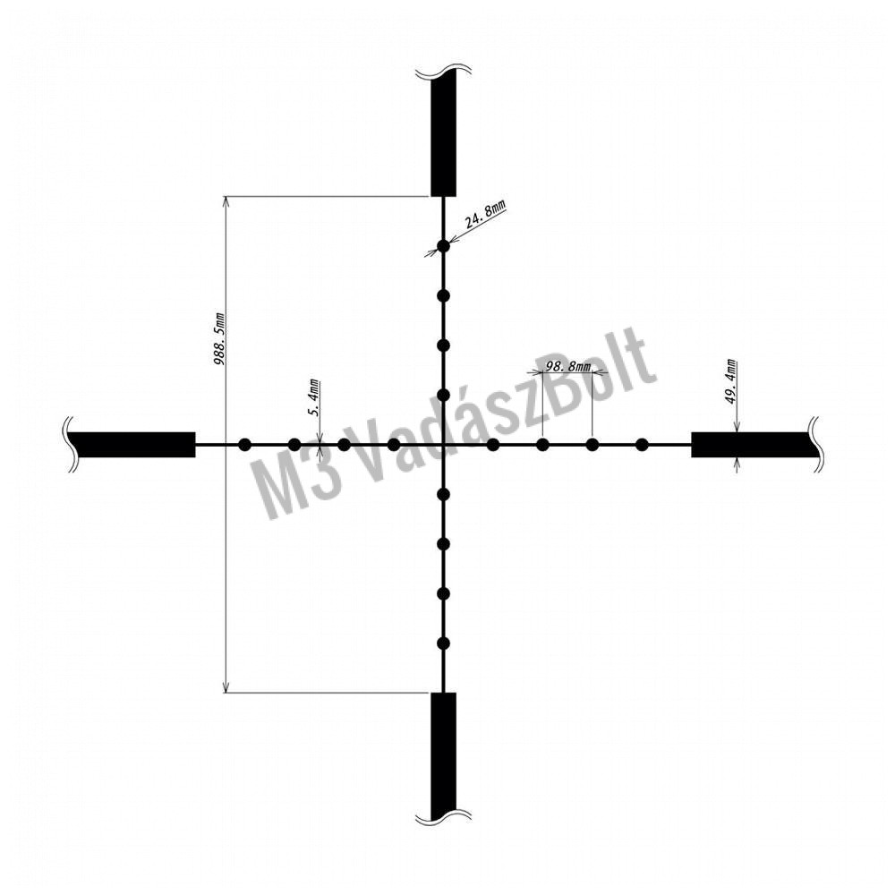 Egyéb tulajdonságok:Szálkereszt a 2. fókuszsíkban. MRAD állítási lehetőség: 1 cm 100 méterenként.