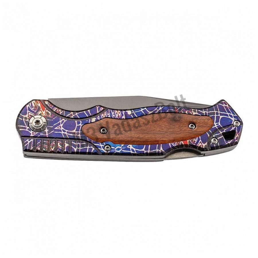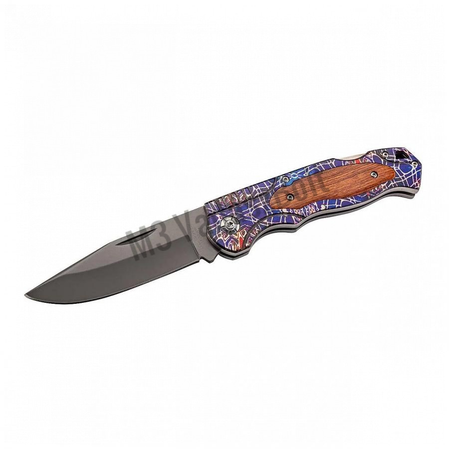 Robusztus összecsukható zsebkés Herbertz 595413 Edelstahl modern kivitelben, mindennapi (EDC) hordáshoz mindennapi társként. Leejtési pontú, sima élű pengéje AISI 420 rozsdamentes acélból készült, titán bevonattal, a pengén egy bevágással nyílik, és egy Backlock rögzíti. A fogantyú rozsdamentes acélból készült, 3D színes motívummal, és mindkét oldalán cocobolo fa betétekkel. Lyukkal a húr számára.