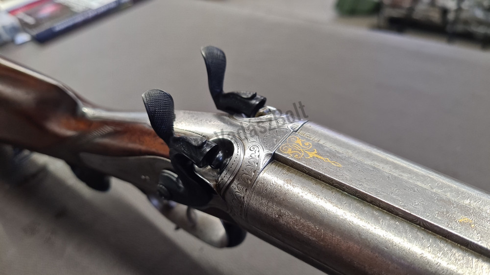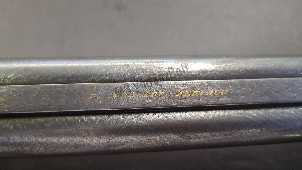 Ferlach Gahlert külső kakasos sörétes fegyver, damaszt csővel 28/70 kaliber, használt