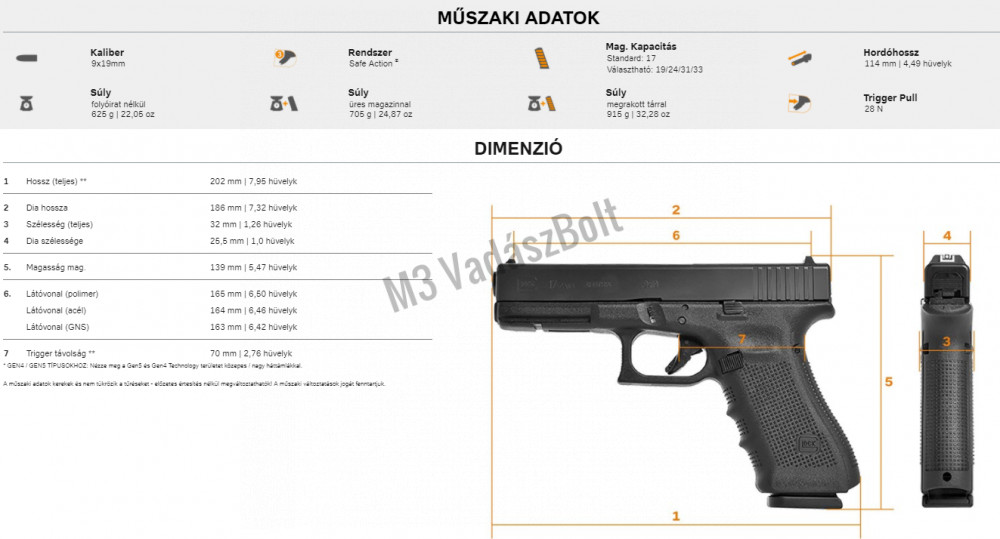 PISZTOLY GLOCK 17 GEN4 9×19, maroklőfegyver