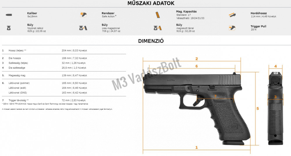 PISZTOLY GLOCK 17 Gen3 9×19, maroklőfegyver