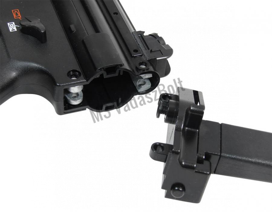Félautomata rendszerû légfegyver , állítható hátsó irányzék ,blow back ,manuális biztosítás , behajtható válltámasz , szerelék sín ,teljesen élethû másolat .