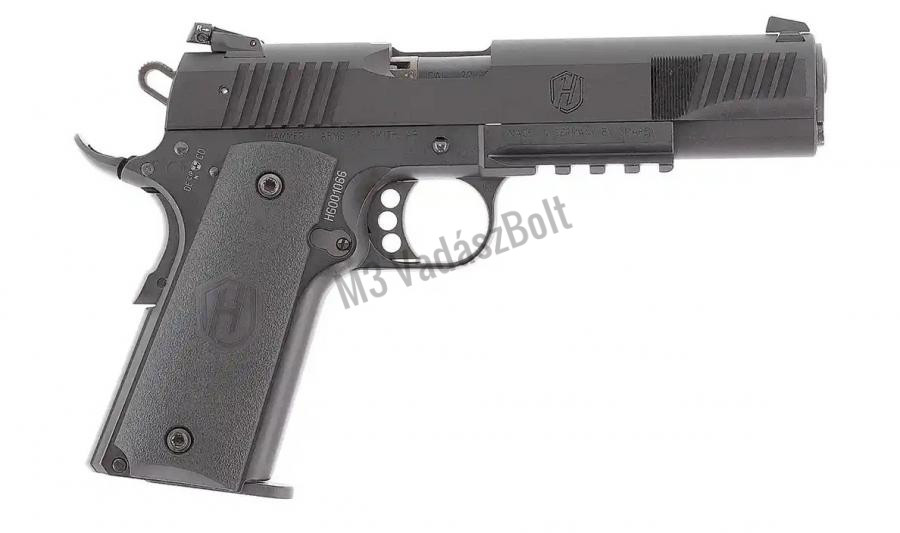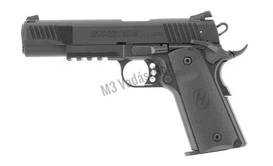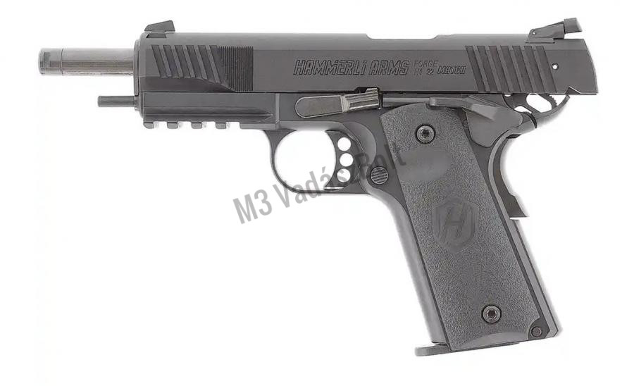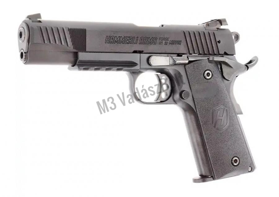 A Hammerli Arms Forge H1 22 Match a klasszikus 1911-es formavilágot modern műszaki megoldásokkal ötvöző sportpisztoly. Megjelenésében megőrzi a hagyományos 1911-es jegyeket, miközben korszerű gyártástechnológiával készül. A modell .22 LR kaliberben érhető el, így elsősorban sportlövészeti felhasználásra készült. Match kivitelének egyik fontos eleme a teljesen állítható LPA hátsó irányzék, amely a pontosabb beállítást segíti. Az átdolgozott elsütőszerkezet egyenletesebb működést és jobb kontrollt tesz lehetővé. A szán CNC-megmunkált T7075 alumíniumból készül, ami stabil és tartós szerkezetet biztosít. A felületet ellenálló Cerakote bevonat védi a külső hatásokkal szemben. A biztos fogást a Santoprene markolatpanelek támogatják, amelyek ergonomikus kialakításukkal kényelmes használatot nyújtanak. A fegyver több biztonsági elemmel is rendelkezik, köztük hüvelykujjbiztosítóval, markolatbiztosítóval és biztonsági félállással ellátott kakassal. Az ellenőrző nyílás lehetővé teszi a töltöttségi állapot gyors, szemrevételezéssel történő ellenőrzését. A Picatinny sínnek köszönhetően különféle kiegészítők is rögzíthetők rá. A szerszám nélküli szétszerelhetőség megkönnyíti a tisztítást és a rendszeres karbantartást. A csomag része egy fegyverkoffer, egy állítóeszköz, valamint négy darab 12 lőszeres acél tár. A modell kompatibilis a szokványos 1911-es tokokkal és több tartozékkal is.