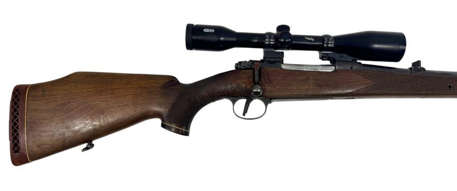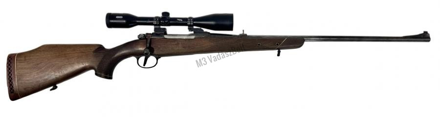 A ZKK600 egy klasszikus, megbízható szerkezetű, cseh gyártmányú ismétlő golyós vadászpuska a népszerű .30-06 Spring. kaliberben. Masszív acélszerkezete és elegáns diófa tusa miatt a típus évtizedek óta kedvelt választás a vadászok körében. Ez a példány használt, de jó állapotú, minimális hibával a tuson (a fotókon látható módon). A tuson kisebb használati nyomok, felületi karcok előfordulnak, de szerkezeti sérülés nincsen. A fémrészek felületkezelése szép, a cső és a zár egyaránt műszakilag ép, működése sima és pontos. A ZKK600 típus jellemzői közé tartozik a kiváló pontosság, az erős és precíz zármechanizmus, valamint a kényelmes markolat és előágy maratás, ami biztos fogást nyújt terepi használat során is. A cső hossza körülbelül 600 mm, a tár kapacitása 3 lőszer.