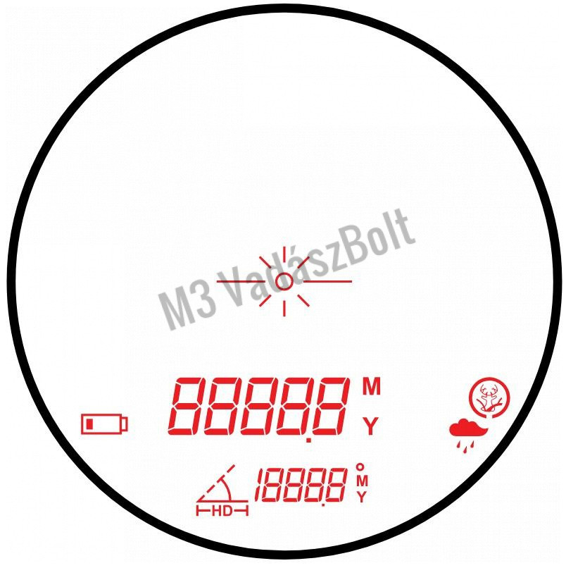 Sztenderd/horizontális mérés táv/szög/eső/vadászati módokkal
