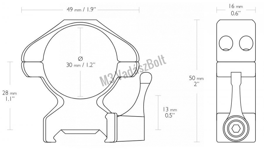 Hawke Precision, stabil, acél, 30 mm weaver szerelék, magas magasságú.