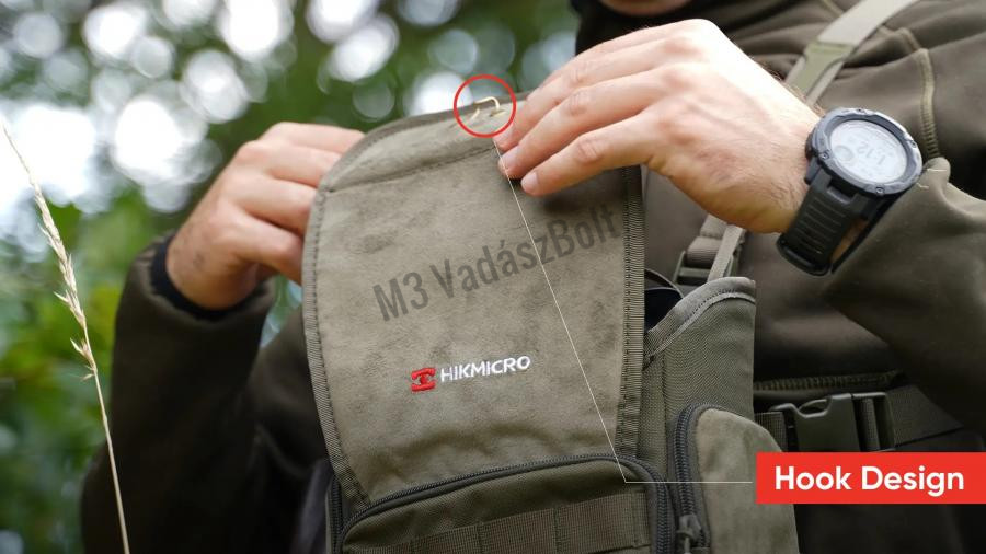 A hám strapabíró anyagokból és tartós csatokból készült, hogy hosszú távon is megbízható társ legyen a mindennapi használat során. Beépített esővédővel rendelkezik, amely még esős időben is megóvja a felszerelését. Mindezek ellenére a hám rendkívül könnyű, és tökéletesen illeszkedik a HIKMICRO többspektrumú távcsövekhez.