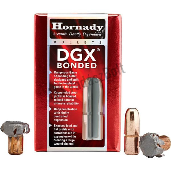 A Hornady DGX Bonded (Dangerous Game eXpanding) lövedék rézbevonatú acélköpenyt tartalmaz, amely az ólommaghoz van rögzítve, annak érdekében, hogy korlátozott, irányított tágulást biztosítson mély behatolással és magas tömegtartással. A köpeny és a mag közötti kötés megakadályozza a szétválást nagy energiájú ütközéskor, például csonttal való találkozásnál, így a lövedék egyben marad a mély tágulás érdekében. A DGX Bonded lövedékeket ugyanazon a profilon alakították ki, mint a hozzá tartozó DGS (Dangerous Game Solid) lövedékeket, viszont a DGX lövedékek 1,5-2-szeresére tágulnak a lövedék átmérőjéhez képest.