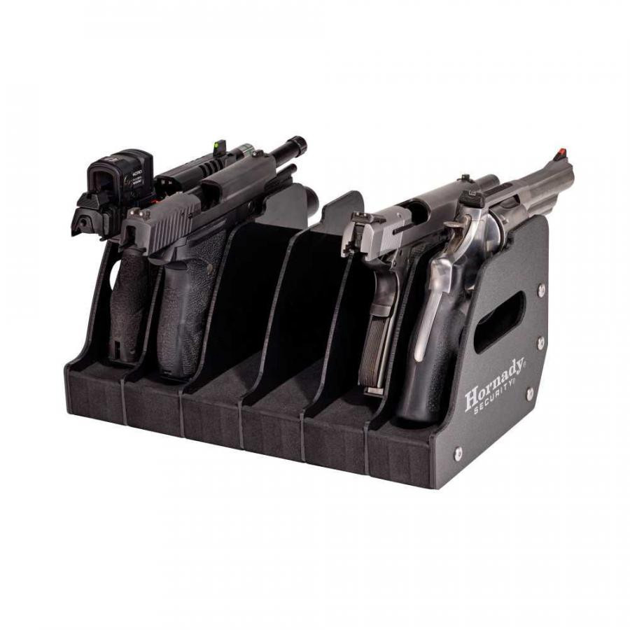 A sokoldalú pisztolytartó válaszfalának köszönhetően akár hat maroklőfegyvert is biztonságosan elrendezhet széfjében. A nagy sűrűségű habszivacs és műanyag elválasztók védik a maroklőfegyvert, míg a vastag oldallemezek szilárdságot és merevséget biztosítanak.