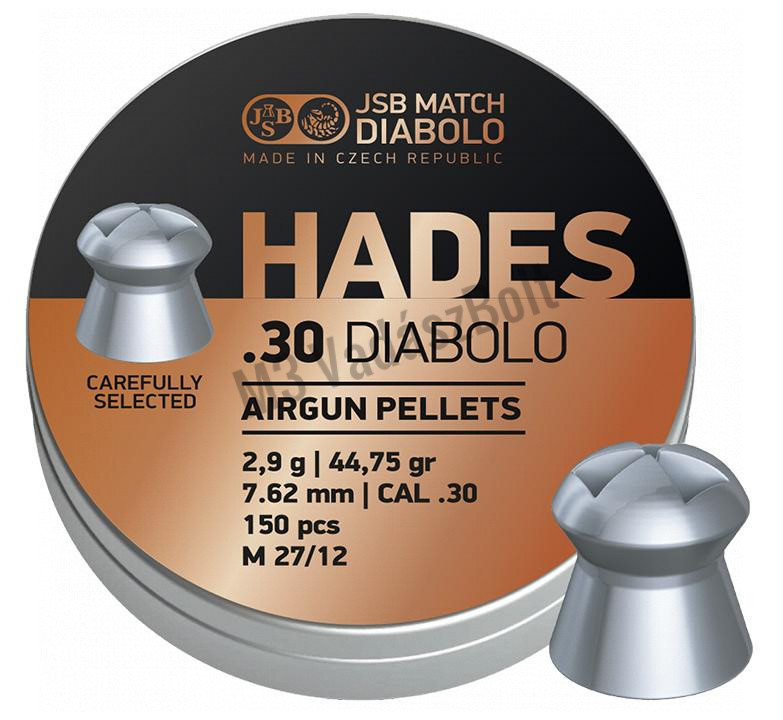 A JSB Hades a gyártó legújabb vadászlövedéke, ami alternatívát kínál a Predator szériára, avagy nagy távolságra is a Jumbo széria pontosságát nyújtja, mégis expanzív, vadászheggyel rendelkezik. A Hades lövedékeket úgy tervezték meg, hogy az üregek ne rontsanak számottevően a lövedék aerodinamikáján, azonban szilárd anyagnak ütközve expanzív, kiterjedő hatást váltsanak ki. Becsapódáskor a lövedék feje szétlapul-szétnyílik, leadva a célponton a lövéskor kifejtett teljes energiát.