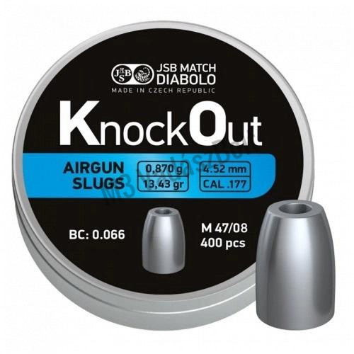 A JSB KO Slug lövedékei a piacon fellelhető legpontosabb és leghatékonyabb darabok, kifejezetten vadász célra. Ezeket a léglövedékeket a JSB teljesen szoknya nélkül gyártja, ezért is a "slug" név, ami a sörétes puskák lövedékére utal, mellyel leggyakrabban vaddisznóra vadásznak. A KO Slug csak PCP légfegyverekben használható, és azok erejével képes a leghatékonyabb lenni. A tömör testnek köszönhetően valódi ballisztikával rendelkezik, a megfelelő huzagolással elképesztő lőtávolságra és energialeadásra képes. A túlméretnek köszönhetően jobban tömíti a fegyvert, kevesebb levegő szökik el tüzeléskor.