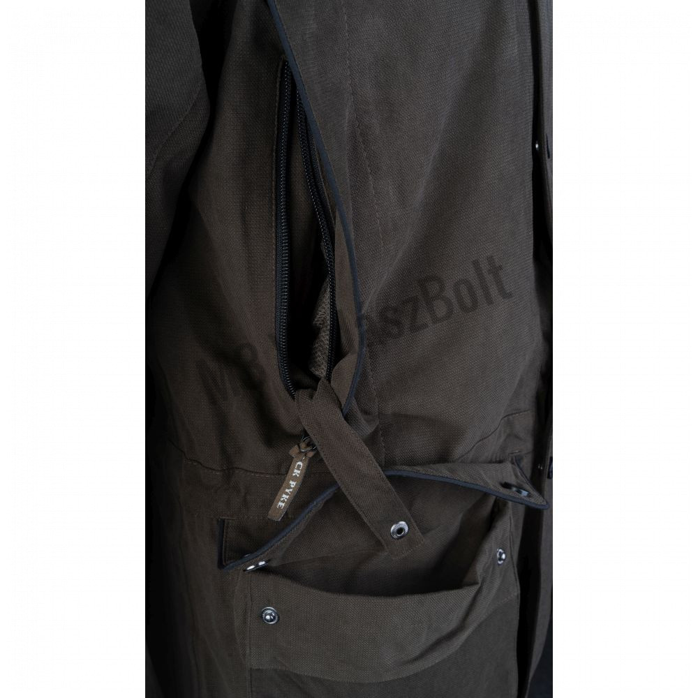 A Jack Pyke Ashcombe Jacket Nyco anyagból készült TPU membránnal, amelyek vízállóak és könnyű légáramlást tesznek lehetővé. A kapucninál, a derékrészen és a mandzsettánál elasztikus húzózsinór található, a kapucni hátsó részén és az ujjakon tépőzáras állítási lehetőséggel. Maga a kapucni levehető, és elrejthető a gallér belsejében, így könnyen hozzáigazíthatod a ruhadarabot az igényeidhez. Kívül található még két nagyméretű zseb, patentos fülekkel, felső cipzáras zseb vagy telefonzseb, valamint két cipzáras kézmelegítő zseb. Az Ashcombe kabát okos, praktikus és tele van szuper funkciókkal, így nagyszerű választás megannyi szabadtéri tevékenységhez.